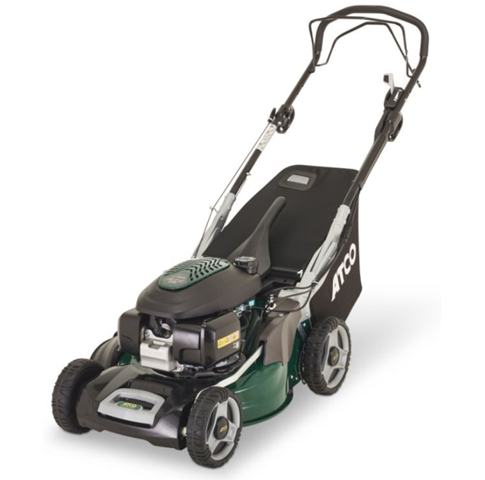 Featuring infinitely adjustable ground speed control and combining four in one mowing with a seven-step cutting height range, the feature-packed ATCO Quattro 19SH V offers the sort of versatility that’s essential for successfully managing a multitude of British lawn conditions! Powering the Quattro 19SH V is a powerful Honda GCVx170 engine, which thanks to its overhead valve configuration, offers superior fuel economy, quiet operation and low emission performance. The Honda GCVx170 engine with Autochoke makes the starting process quick and easy; while a capacious 0.91-litre fuel tank ensures top-up stops will be few and far between. The underside of the durable aluminium/galvanised steel deck on the Quattro 19SH V is easy to keep free of corrosive debris accumulation, thanks to ATCO’s provision of a washing link - simply attach your hosepipe, spin the blade and the job’s done! The Quattro 19SH V employs a Twinclip blade with four cutting edges rather than two - these ensure cut grass is finely shredded before being blown into the generous 70-litre catcher, which improves collecting capacity by an impressive 20%, and minimises downtime caused by emptying stops. The Twinclip blade also optimises mulching performance. Blending three-position handlebar height adjustment with VCS vibration damping, the Quattro 19SH V excels in terms of user comfort. The handles fold down over the engine for space-saving storage. With its 48cm (19"") cutting width this model is ideal for larger areas up to 1000m2.