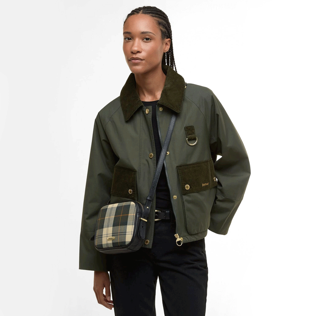 Crafted from signature Barbour tartan canvas with natural grained leather trims, it offers both a timeless look and a durable finish.