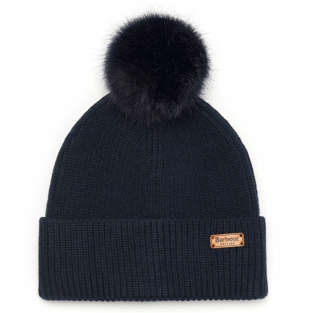 The Dover beanie is knitted for warmth and comfort, finished with a soft faux fur pom and an embossed Barbour badge for a touch of heritage.