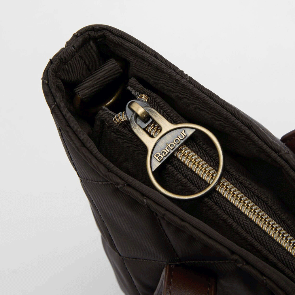 Its lightweight design is finished with classic Barbour diamond quilting, leather-look grab handles and a matching logo badge.