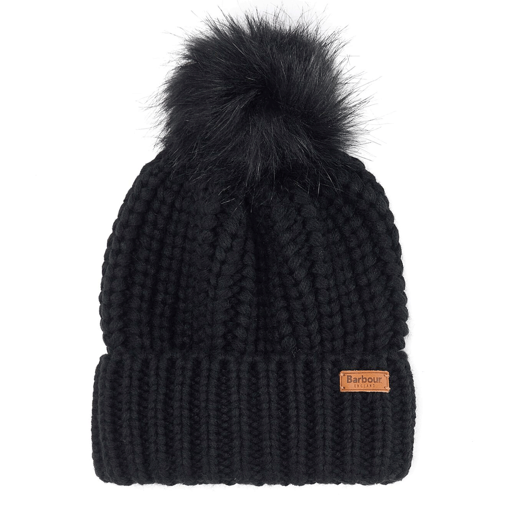 Made with a soft, thick yarn for warmth and comfort, it features a contrasting ribbed turn-up hem and a plush faux-fur pom-pom for a traditional winter finish.