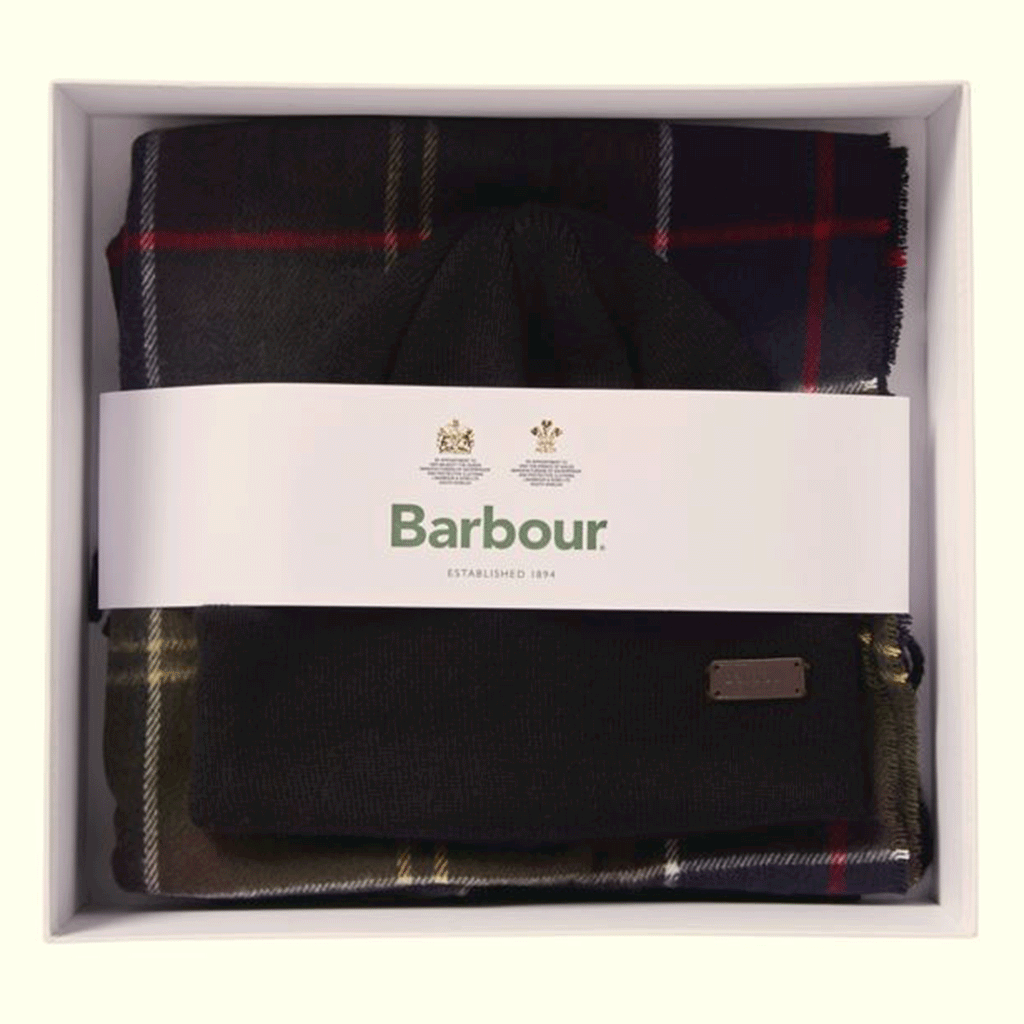 Barbour Swinton Beanie & Galingale Scarf Gift Set Classic Tartan