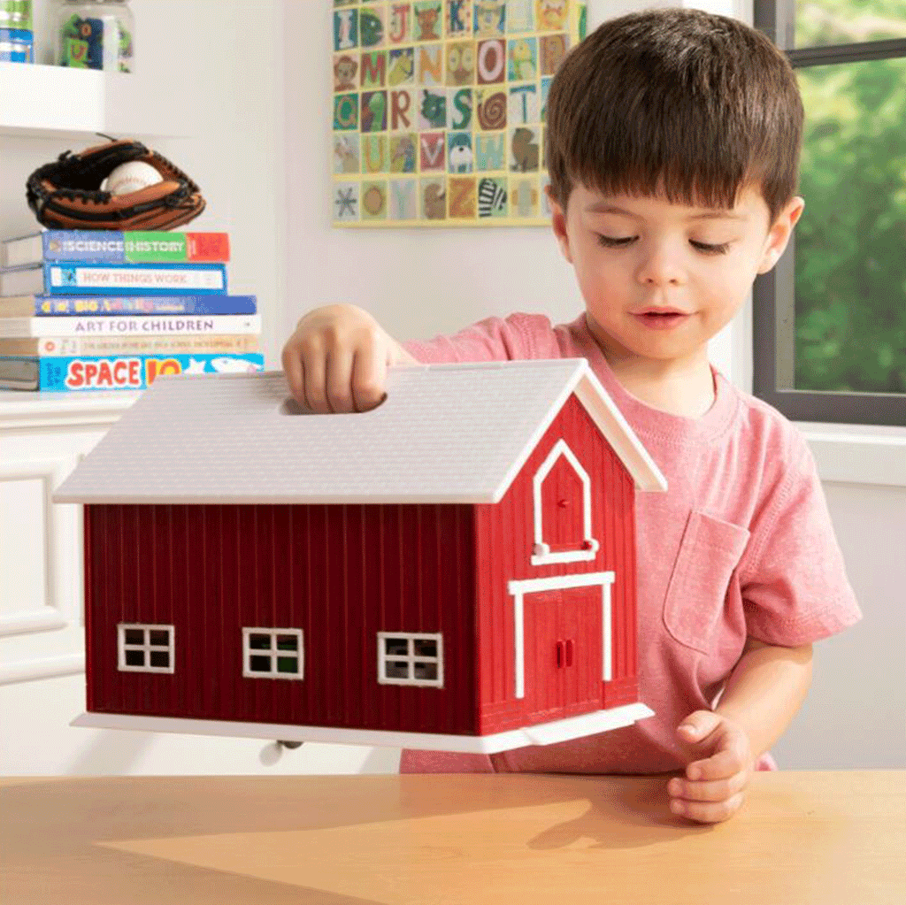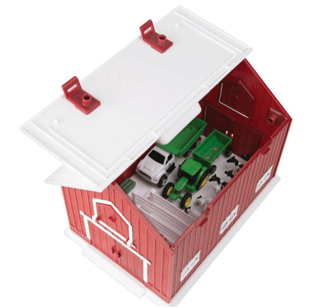 Designed for both fun and practicality, the big red barn features a built-in carry handle and lift-up roof, allowing all accessories to be neatly stored and transported for play on the go.