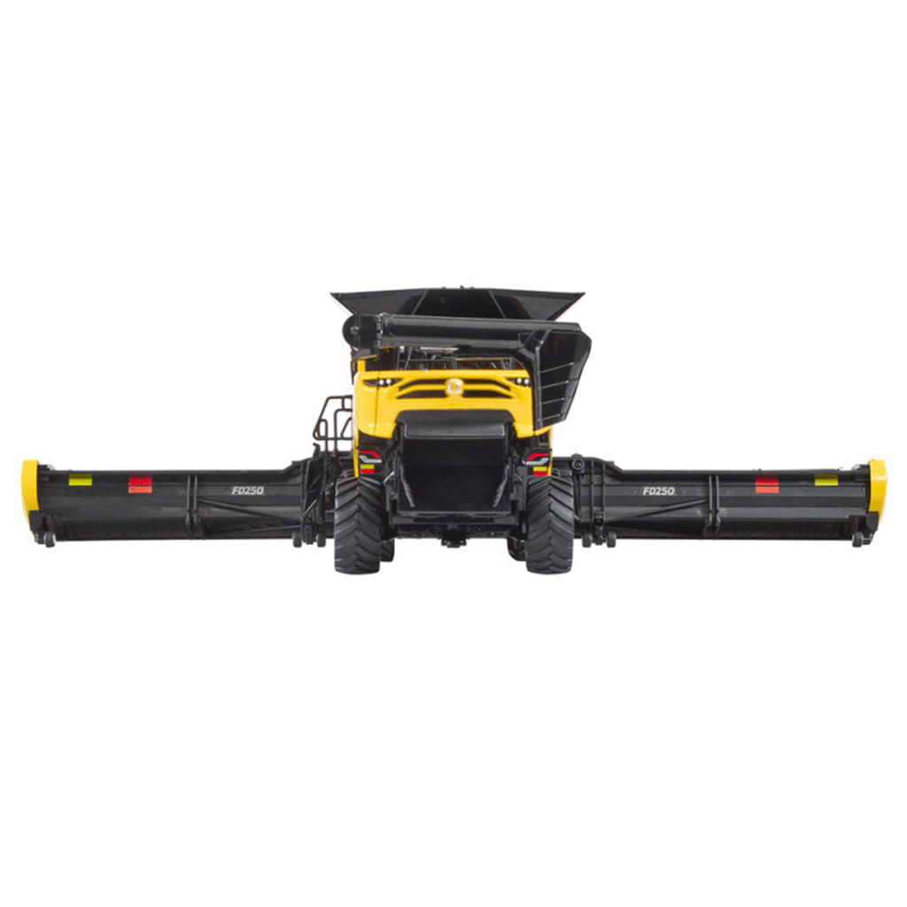 It comes complete with both a draper head and a 16-row corn head, making it a standout piece on any display shelf.