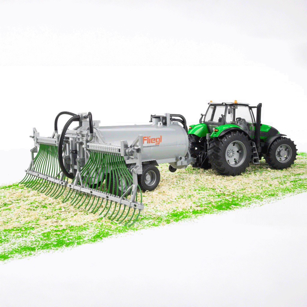 The Bruder Fliegl Barrel Trailer with Spread Tubes is a realistic and fully functional model that brings authentic farming operations to life.