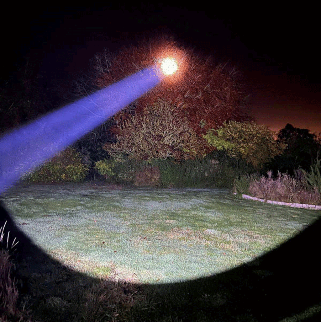 Emitting a powerful 2000 lumens, this rechargeable LED spotlight provides superior brightness and precision, ideal for search, security, and outdoor use.