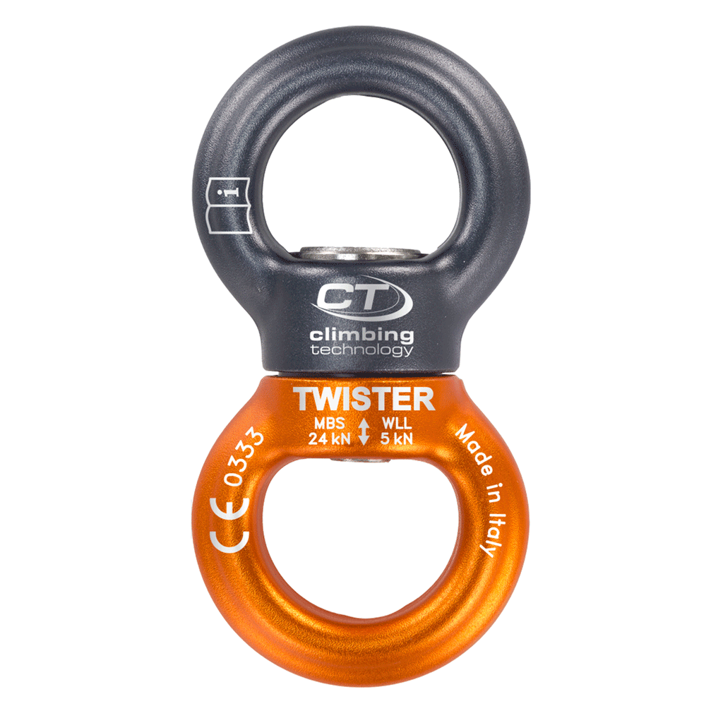 The Climbing Technology Twister is a compact, hot-forged light-alloy swivel designed to prevent rope twisting and improve efficiency during lifting, hauling, and load management.