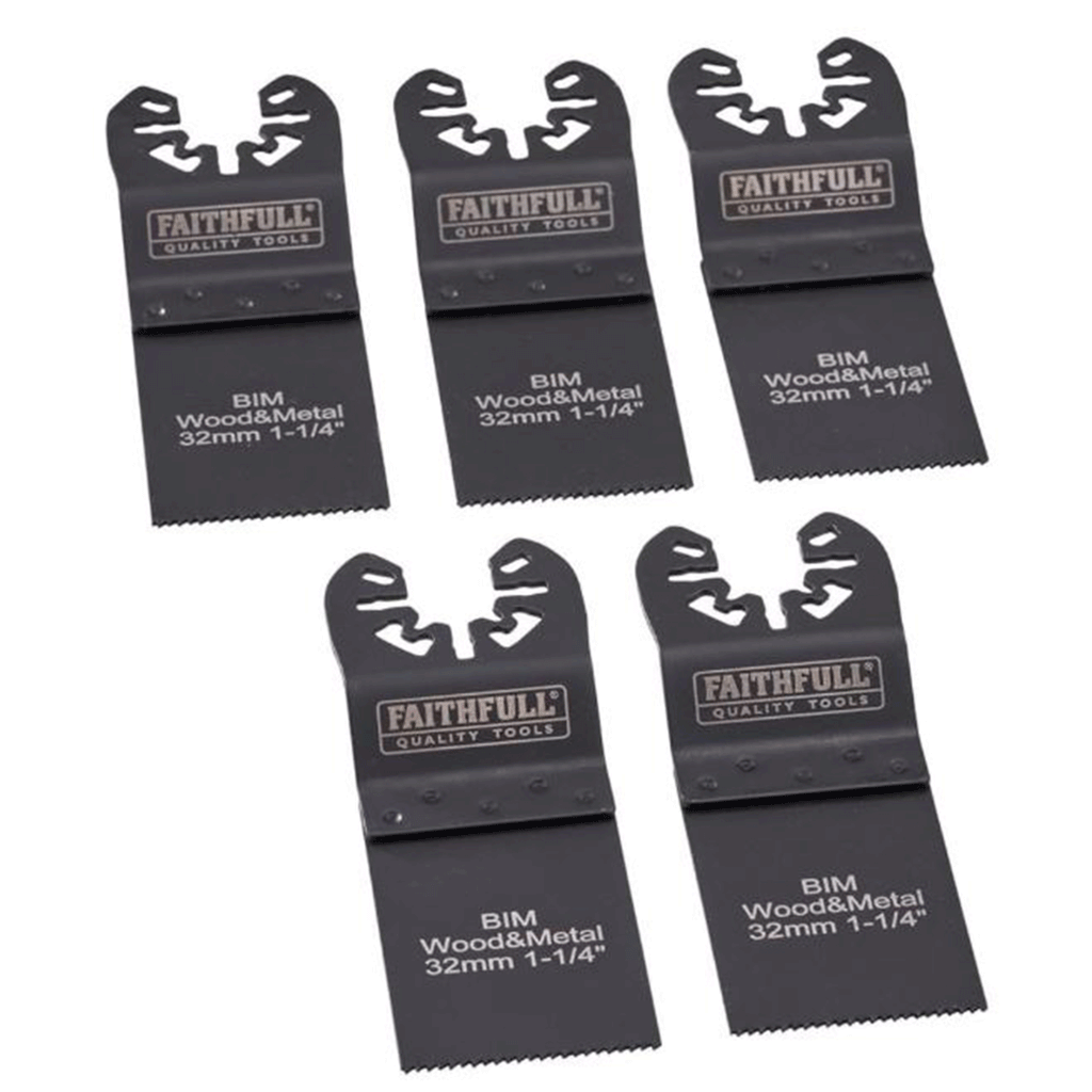 Faithfull Bi-Metal Flush Cut Wood-Metal Blades 32mm Pack of 5