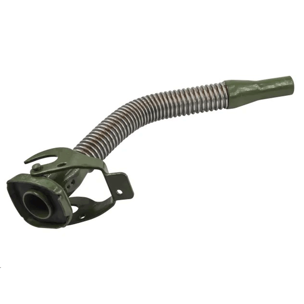 The flexible rubber tip ensures smooth flow and prevents damage to the receiving container, while the secure clip and rubber gasket provide a tight, leak-free seal when fitted to compatible jerry cans. This spout allows for easy, controlled pouring without waste or spillage.