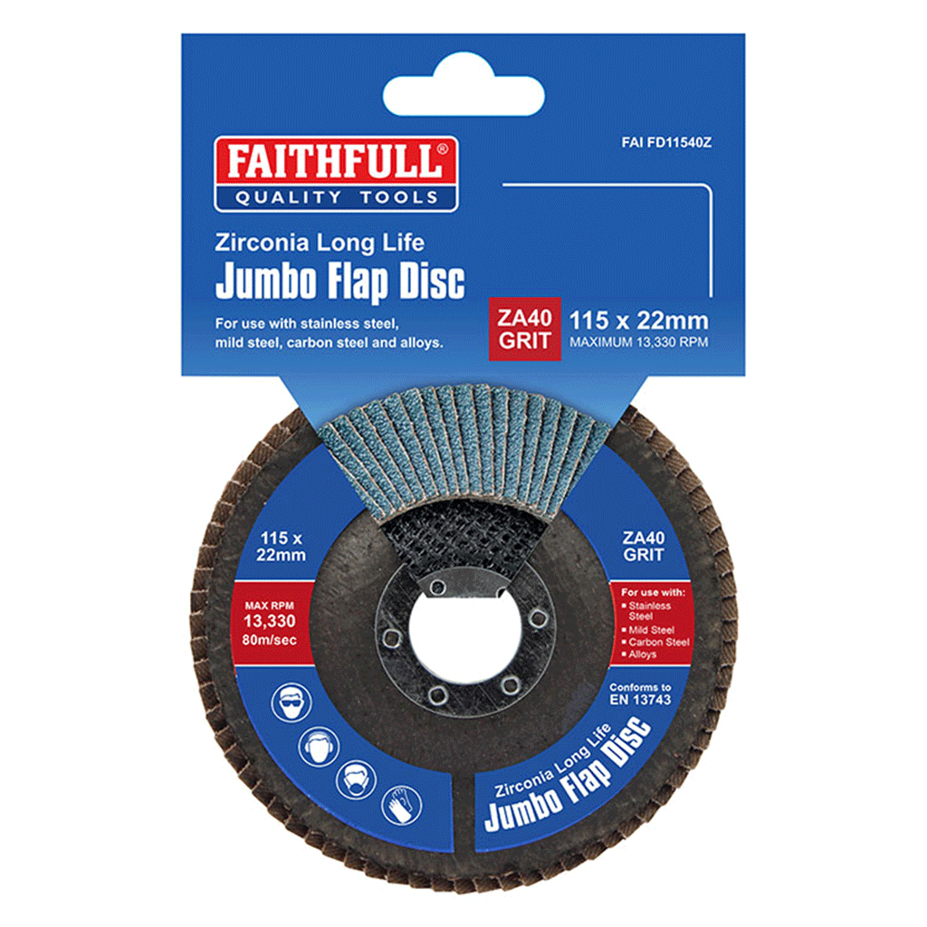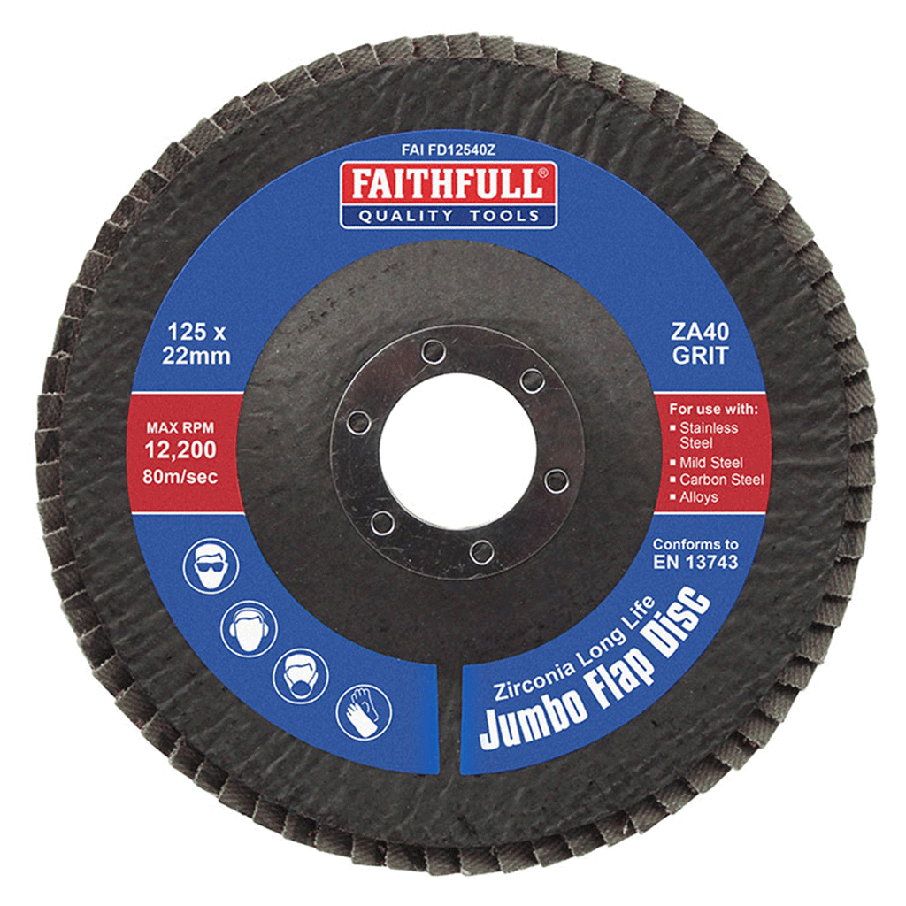 Faithfull Tools Zirconia Abrasive Jumbo Flap Discs 115x22mm