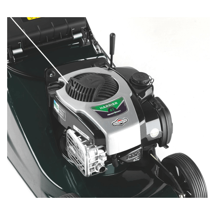 The Harrier® is a high quality, high performing petrol rear-roller lawn mower with a self-propelled engine with variable speed (set between 2.2 - 3.4mph) allowing you to cut your small lawn at your own pace. Recommended for a flat garden that is up to 300 square metres as it's easy to manoeuvre and mow along borders, raised flower beds and retaining walls with the two-piece rear roller and Trim Side deck design. Leaving you with a beautifully striped lawn, mow after mow.