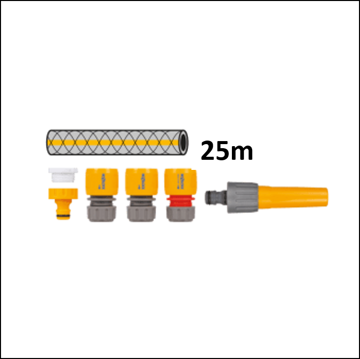 Includes: 15m of Multi-purpose Hose, a Threaded Tap Connector, Hose End Connectors and Nozzle.