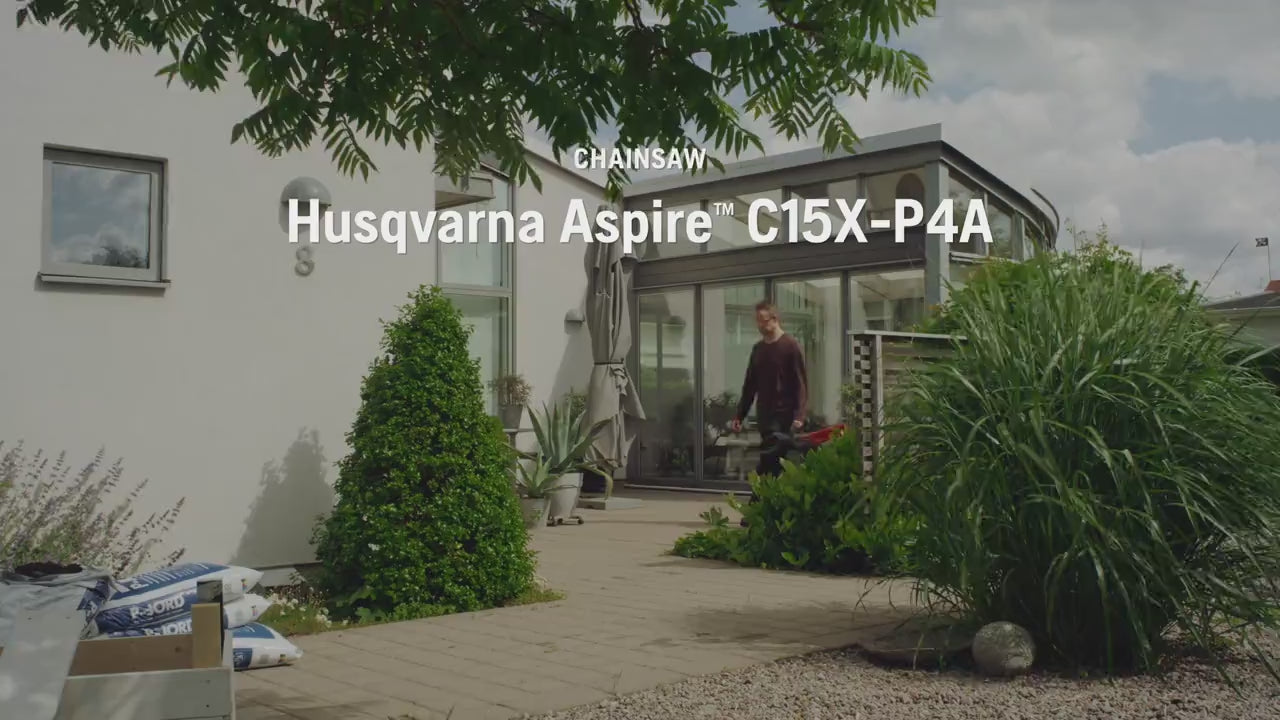 The Husqvarna Aspire™ C15X-P4A battery chainsaw is a compact, lightweight tool designed for pruning, garden clearing, minor tree felling and DIY projects. Its precision bar, fine chain and high cutting speed deliver clean, accurate cuts – even in tight or awkward spaces – helping maintain tree health and achieve neat finishing results.