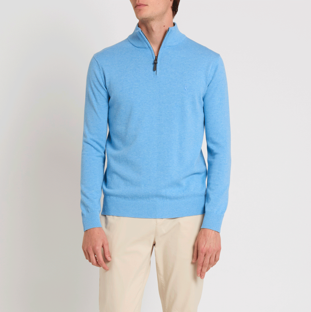 Joules Hillside Quarter Zip Knitted Jumper in Light Blue