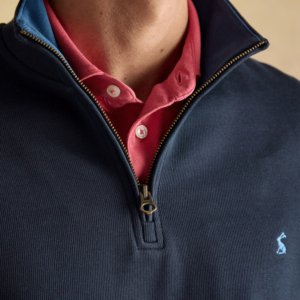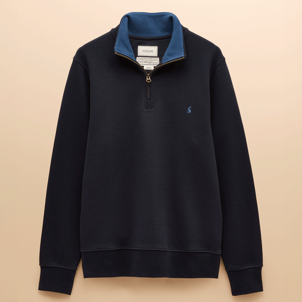 Made from soft French ribbed cotton, it features a quarter zip fastening, tonal Joules embroidery and a contrast inner collar for added detail.