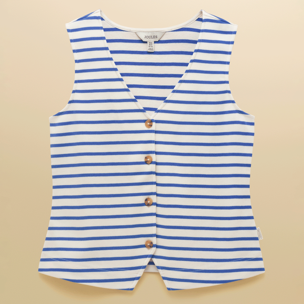 Joules Premium Ribbed Jersey Cotton Waistcoat in Blue Stripe