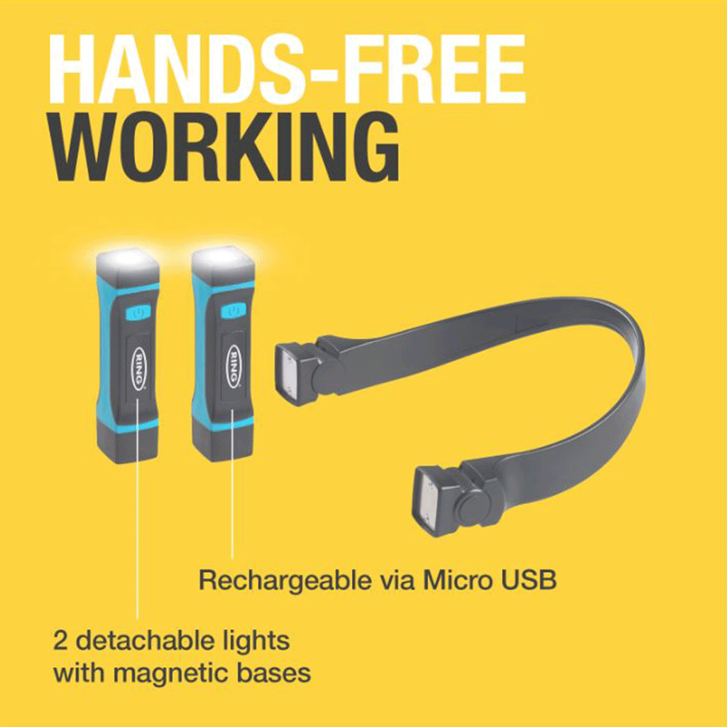 The Ring Wearable Neck Inspection Light offers a practical, hands-free alternative to a head torch — ideal for mechanics, electricians, and other professionals who need clear, focused light while keeping their hands free.