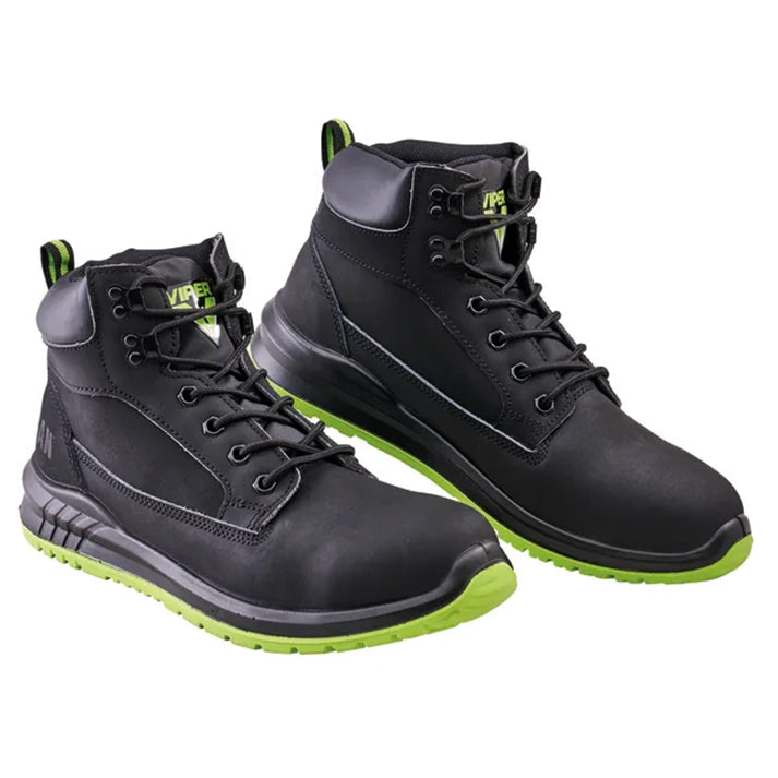 The XMS Viper SBP-rated Safety Boots by Scan, available in sizes 7 - 11, feature a full grain leather upper, a 200-joule steel toecap, and a penetration-resistant steel midsole.