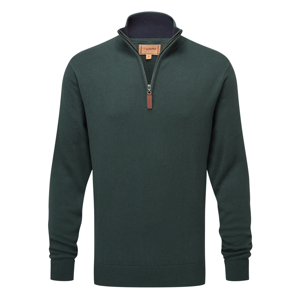 Schoffel Calton Cotton Cashmere Quarter Zip Jumper in Botanical Green
