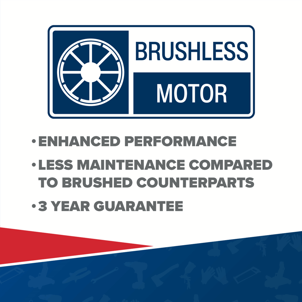 The brushless motor ensures superior performance, reduced maintenance, and extended tool life, while the variable-speed trigger provides full control for delicate or heavy-duty applications.