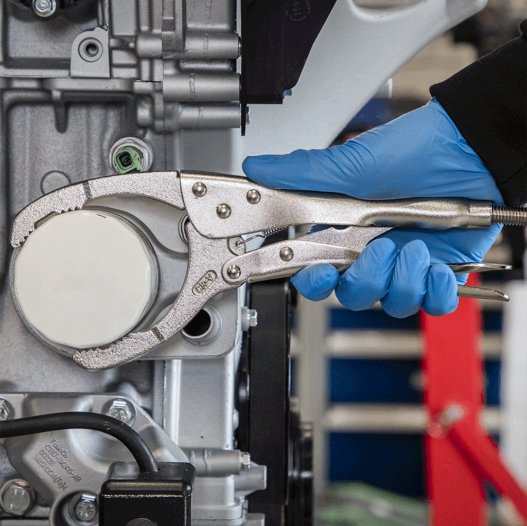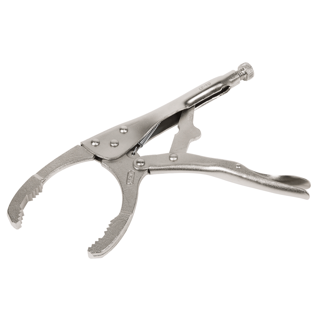 The serrated, drop-forged alloy jaws provide a powerful grip, even on oily filters, and can be locked securely in place for controlled removal.
