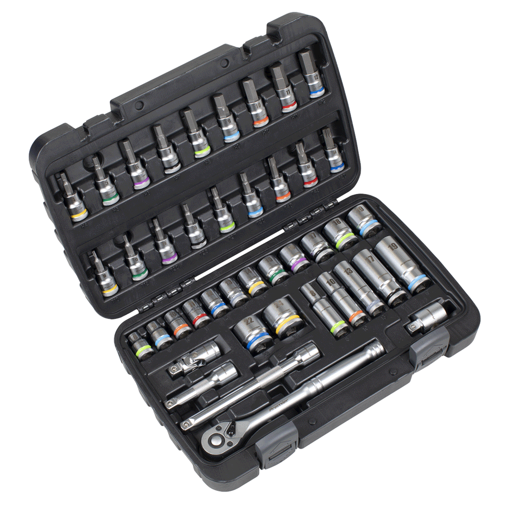 Professional, versatile, and built to last, the Sealey Premier 42pc 3/8"Sq Drive Socket & Bit Set delivers everything you need for reliable, high-torque performance.
