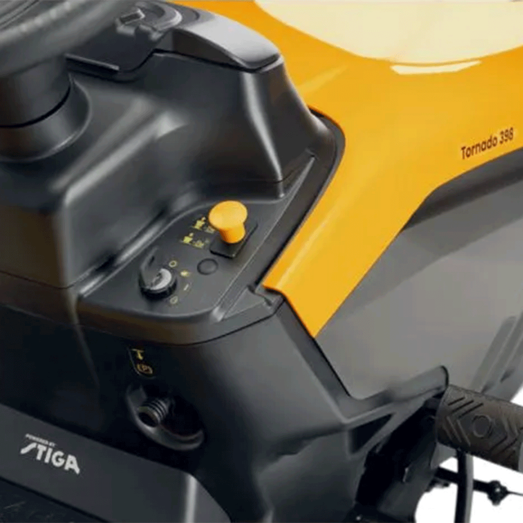 Practical features such as electric blade engagement, two anti-scalp wheels, a washing link for easy deck cleaning, and a sturdy bumper make the Tornado 398 reliable, user-friendly and ready for everyday mowing.