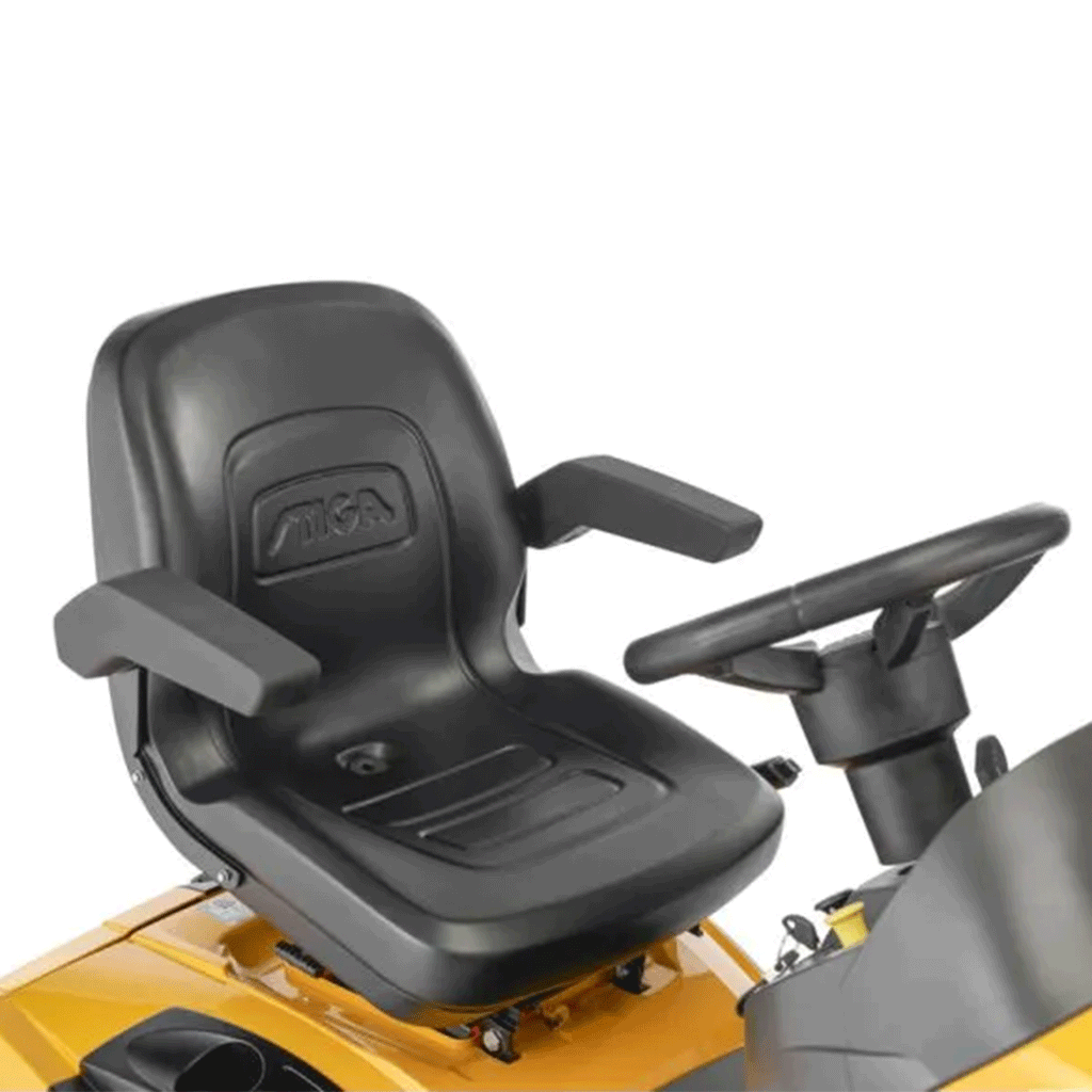 Designed for comfort and durability, it includes a premium seat with armrests, soft-grip steering wheel, cast-iron front axle, anti-scalp wheels, and convenient storage. With rugged build quality and intelligent mowing performance, the Tornado 9121 W is the ultimate choice for large-scale lawn care.