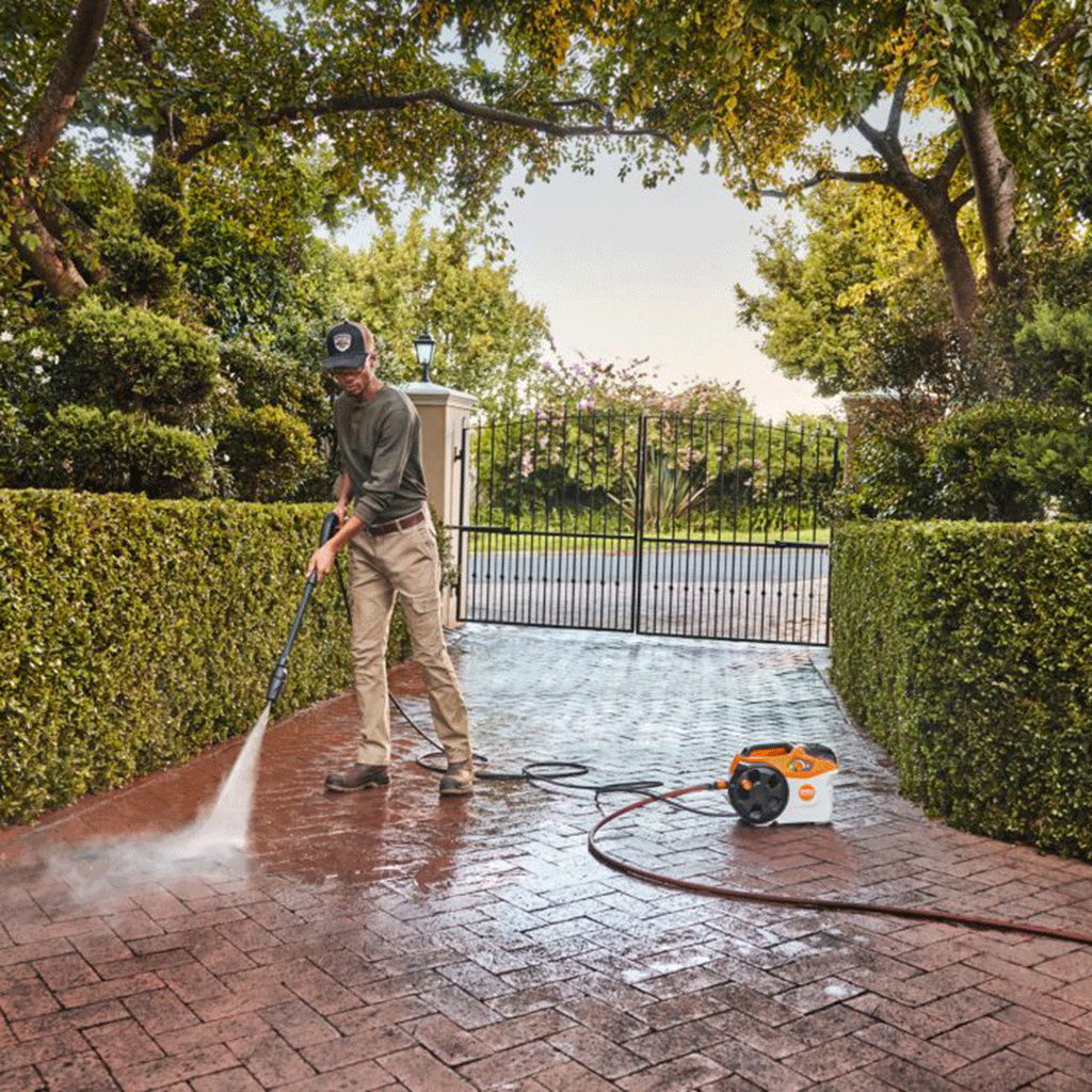 The REA 100 PLUS is a battery-powered portable pressure washer that is part of the AP System and designed for large gardens and professional applications, making it perfect for use at home. Compact and lightweight, it is powered by an interchangeable battery that can be used in any other machine in the AP System range to cover other gardening tasks, as well as professional machines, such as chainsaws, hedge trimmers, blowers, pole pruners and more.
