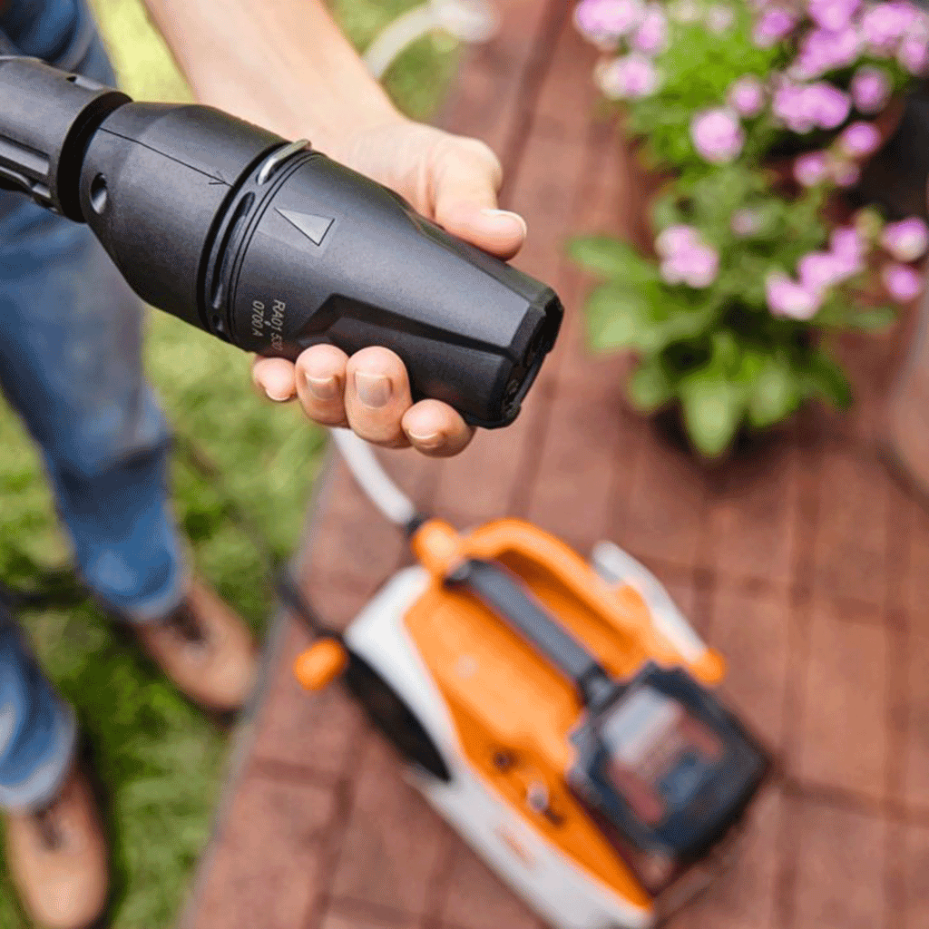The REA 60 PLUS is a battery-powered portable pressure washer that is part of the AK System and designed for medium-sized to larger gardens, making it perfect for use at home. Compact and lightweight, it is powered by an interchangeable battery that can be used in any other machine in the AK System range to cover all your gardening tasks.