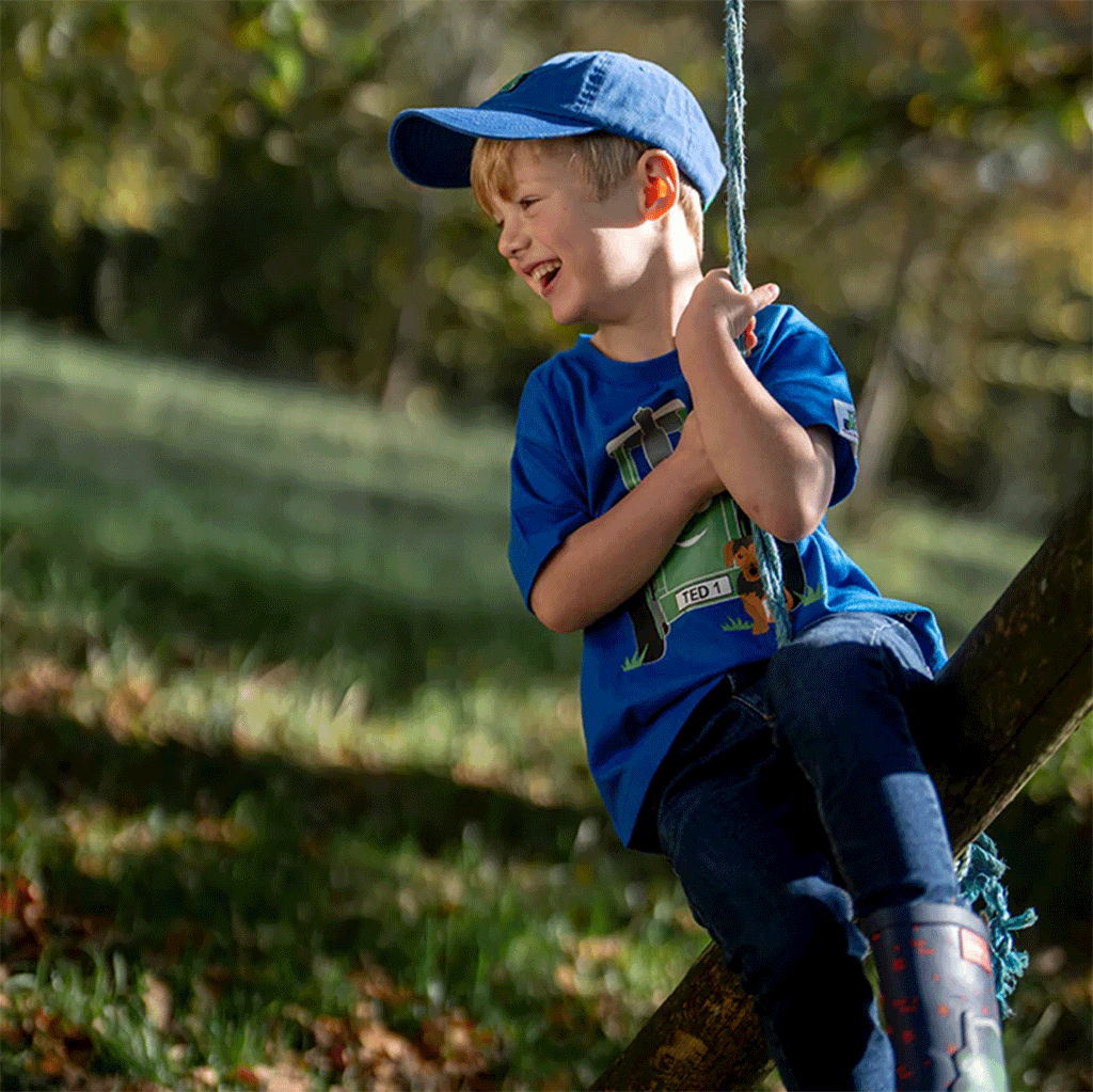 Get ready for outdoor adventures with the Tractor Ted Vintage Blue Cap, a fun and comfortable accessory for any young fan.